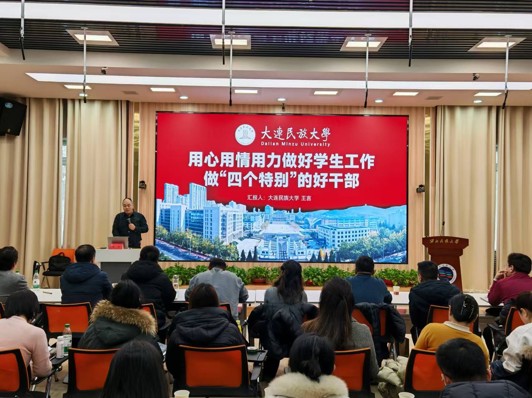 12月27日下午,学校召开学生教育管理工作经验交流会。会议邀请大连民族大学党委学生工作部、党委武装部副部长、学生处副处长王言老师和全国辅导员技能大赛甘肃赛区特等奖获得者、全国“最美辅导员”年度提名人物、兰州交通大学辅导员林育秀老师来校做经验分享和交流。学校各培养单位学生工作办公室主任、副主任和部分辅导员参加会议,会议由学生工作部部长刘曜主持。