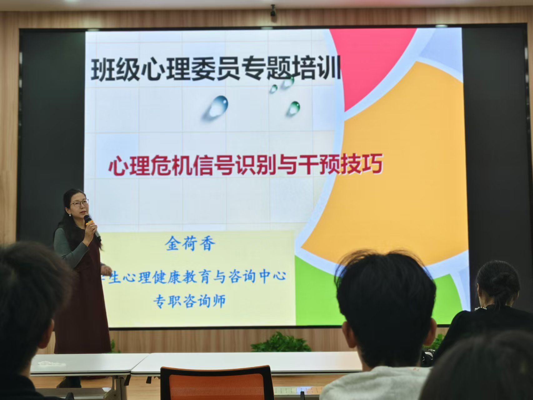 为提升学院(部)学生会心理健康服务部部长和班级心理委员心理危机预防和识别能力,扎实推进学生心理健康教育工作,学生心理健康与咨询中心于2024年11月11日晚7:30,在两校区同时举办2024级班级心理委员心理工作技能专题培训。培训由心理中心金荷香、鲁玉福老师主讲,2024级各班级心理委员280余人参加了此次培训。