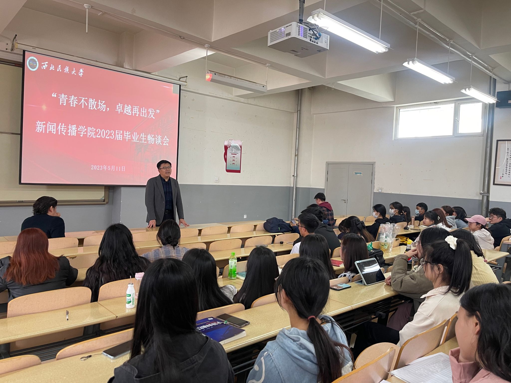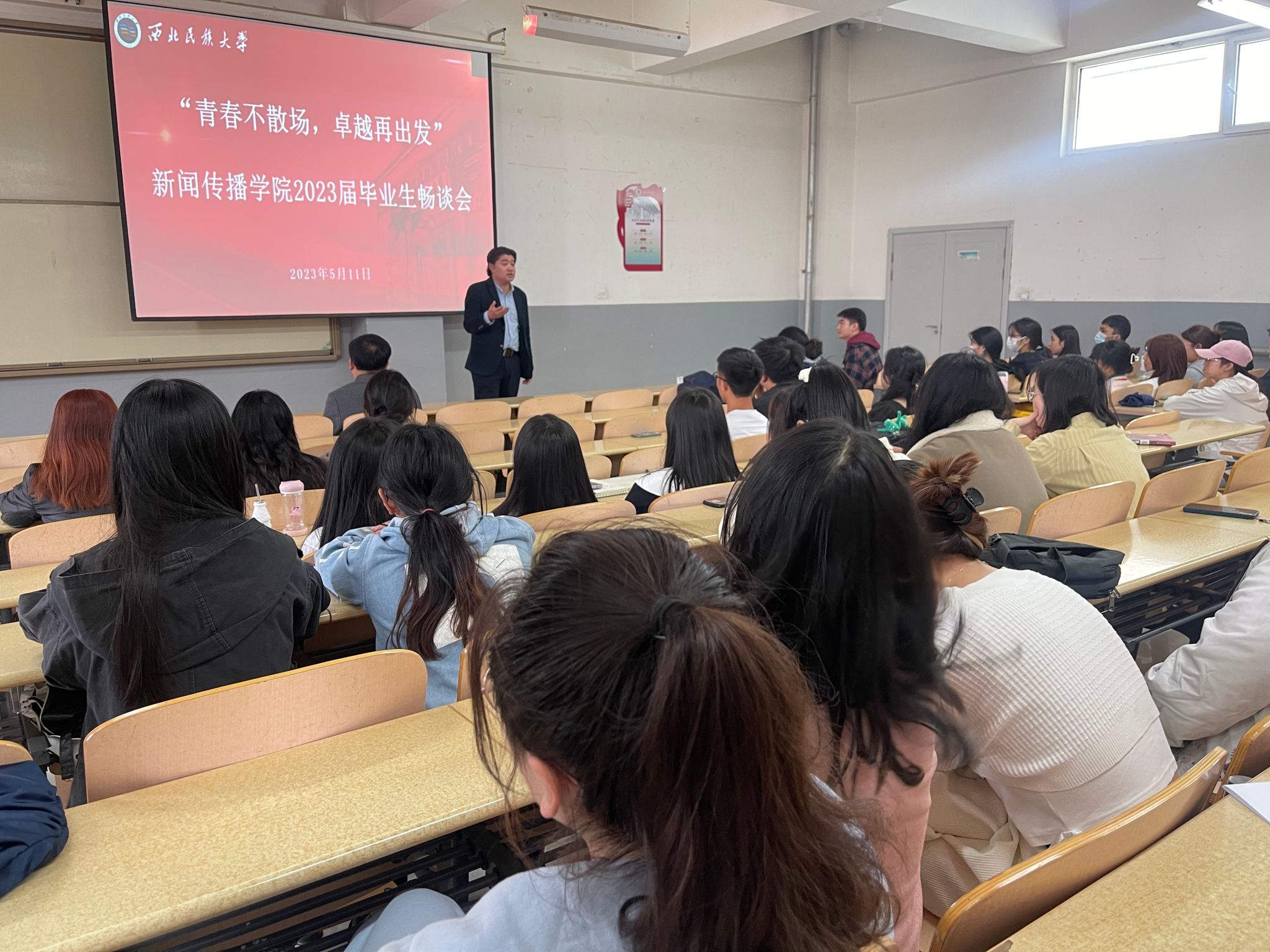 2023年5月11日,新聞傳播學(xué)院召開(kāi)“青春不散場(chǎng),卓越再出發(fā)”2023屆畢業(yè)生暢談會(huì),學(xué)院領(lǐng)導(dǎo)班子、輔導(dǎo)員、班主任及部分畢業(yè)生參加了暢談會(huì)。