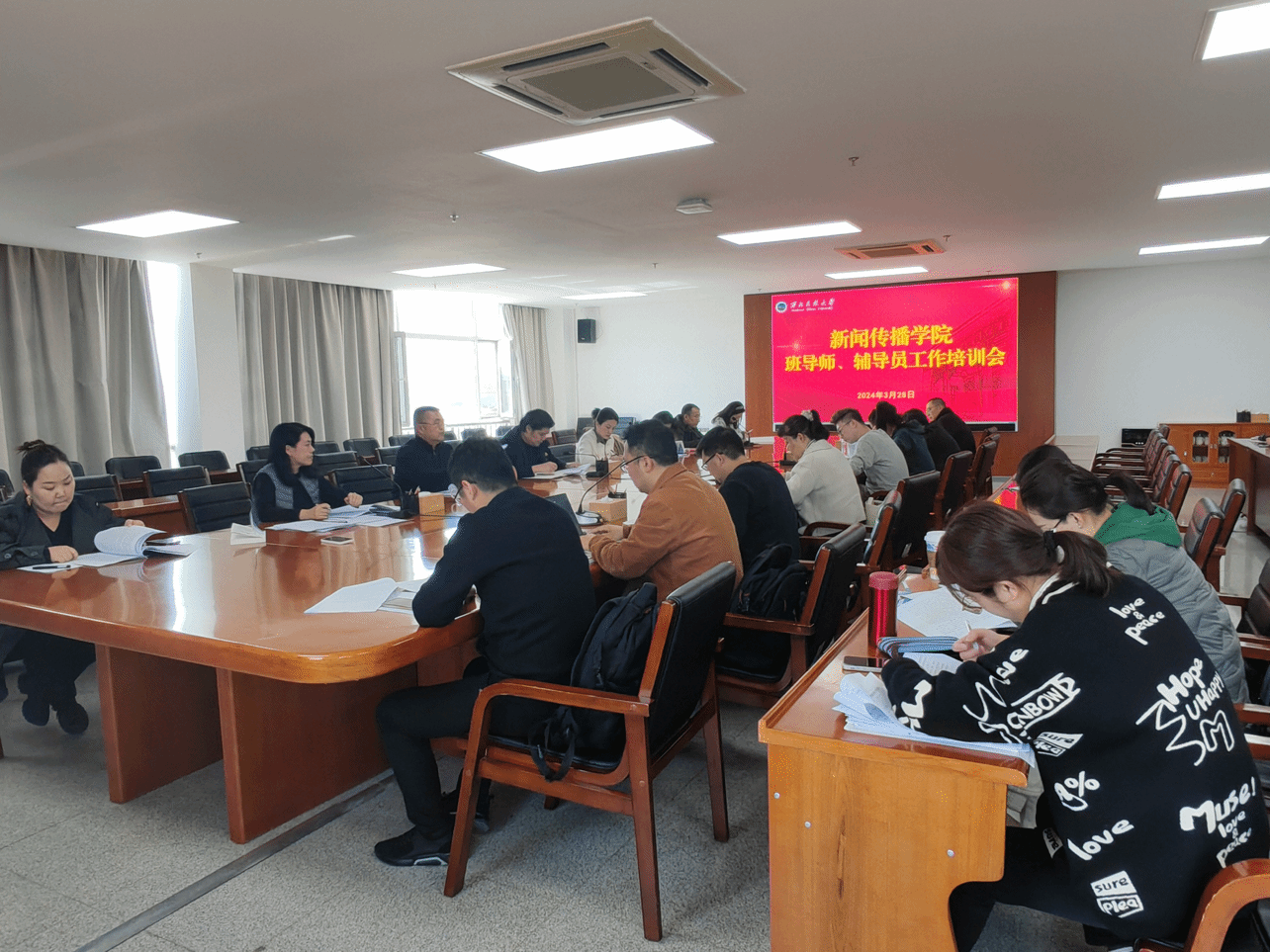 為加強新聞傳播學院學生教育管理工作隊伍建設,提升班導師、輔導員的專業素養和工作能力, 3月28日,新聞傳播學院舉辦班導師、輔導員工作培訓會。學院黨委書記劉曜,黨委副書記、副院長馬月香及全體班導師、輔導員參加會議。