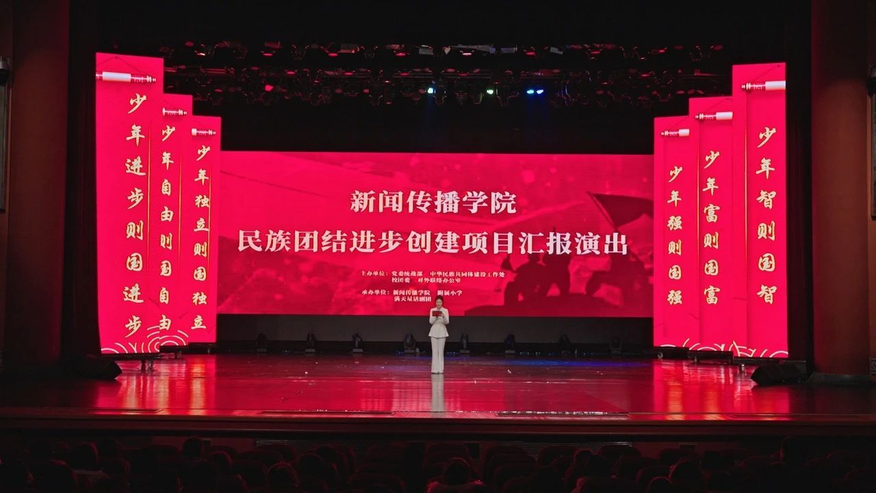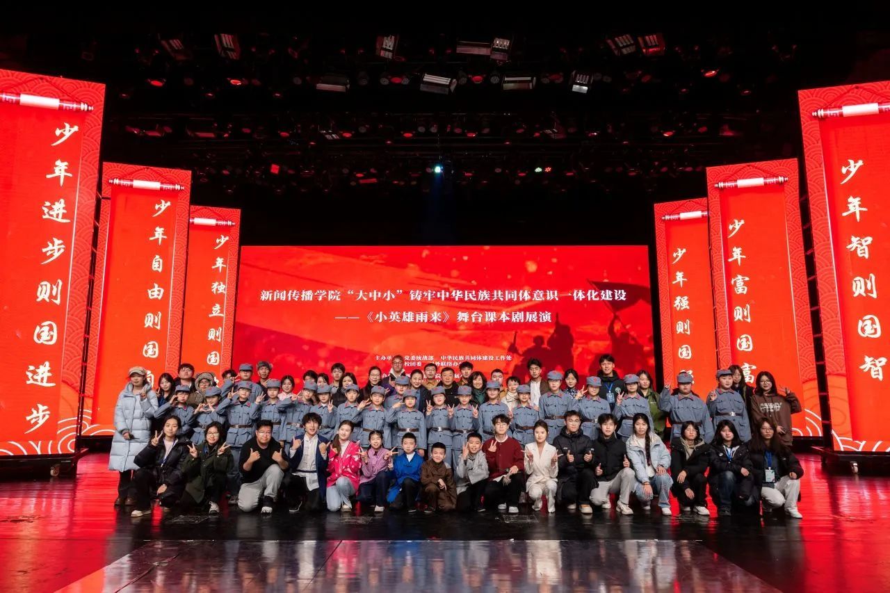 12月18日下午,由學校黨委統戰部、中華民族共同體建設工作處、校團委、對外聯絡辦公室主辦,新聞傳播學院、附屬小學和滿天星話劇團承辦的新聞傳播學院民族團結進步創建項目匯報演出——舞臺課本劇《小英雄雨來》在西北新村校區大禮堂隆重舉行,學校師生代表、附屬小學師生代表及家長共計900余人觀看了演出。