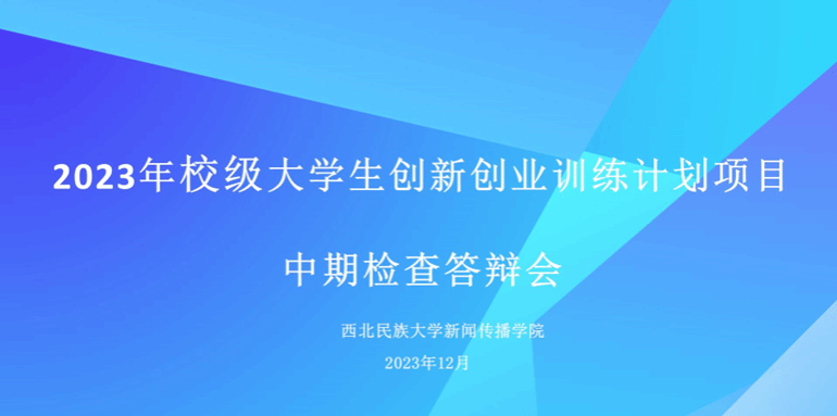 為加強校級、省級大學生創新創業訓練計劃項目管理,保障項目運行質量,促進校級和省級大學生創新創業訓練計劃項目良好運行,根據《西北民族大學校級大學生創新創業訓練計劃項目實施方案》《關于開展2023年省級大學生創新創業訓練計劃項目中期檢查的通知》等要求,新聞傳播學院對2023年立項的30項校級大學生創新創業訓練計劃項目及3項省級大學生創新創業訓練計劃項目進行中期檢查工作,并于12月24日召開新聞傳播學院2023年校級、省級大學生創新創業訓練項目中期檢查答辯會。會議由新聞傳播學院崔永鵬副教授主持。
