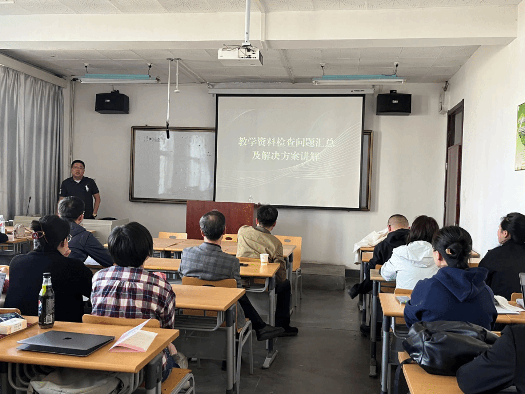 學院副院長張輝剛教授針對培養方案、教學大綱、教案、教學日志、課程考核材料、實驗過程性材料、畢業論文和實習實踐等八個方面存在的問題進行了針對性講解,并提出工作要求。