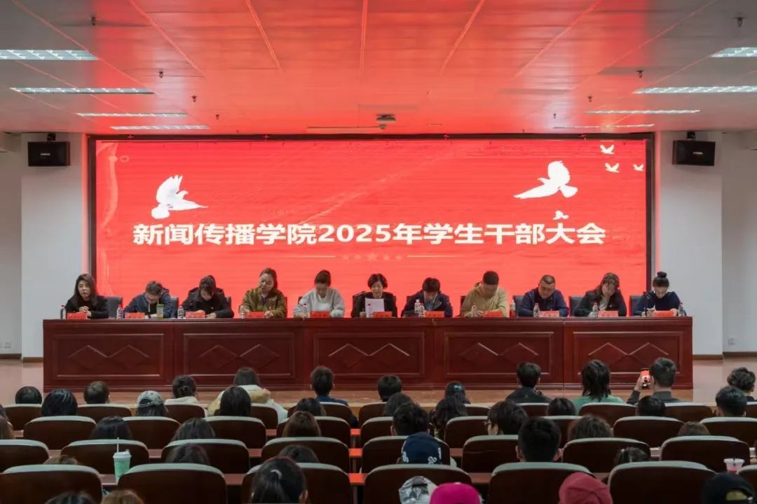 院長盧毅剛教授首先介紹了新聞傳播行業的發展現狀,就學院在面對新業態、新產業、新技術的諸多變化和挑戰時需要如何調整,如何轉型升級做了在新聞傳播教育教學層面的分析。盧毅剛指出,新聞傳播學科肩負著培養新時代傳媒人才的重任,學生干部應以身作則、以身示范,在專業學習、實踐創新中勇當先鋒,帶動全院學生共同成長。他鼓勵學生干部以“講好中國故事”為導向,主動參與學科競賽、融媒體創作和行業實踐,提升專業核心競爭力,同時注重團隊協作能力培養,要將學習與實踐緊密結合,達到“出去就能用”的目標;要以更高標準要求自己,努力成長為有理想、敢擔當、能吃苦、肯奮斗的新時代傳媒青年。