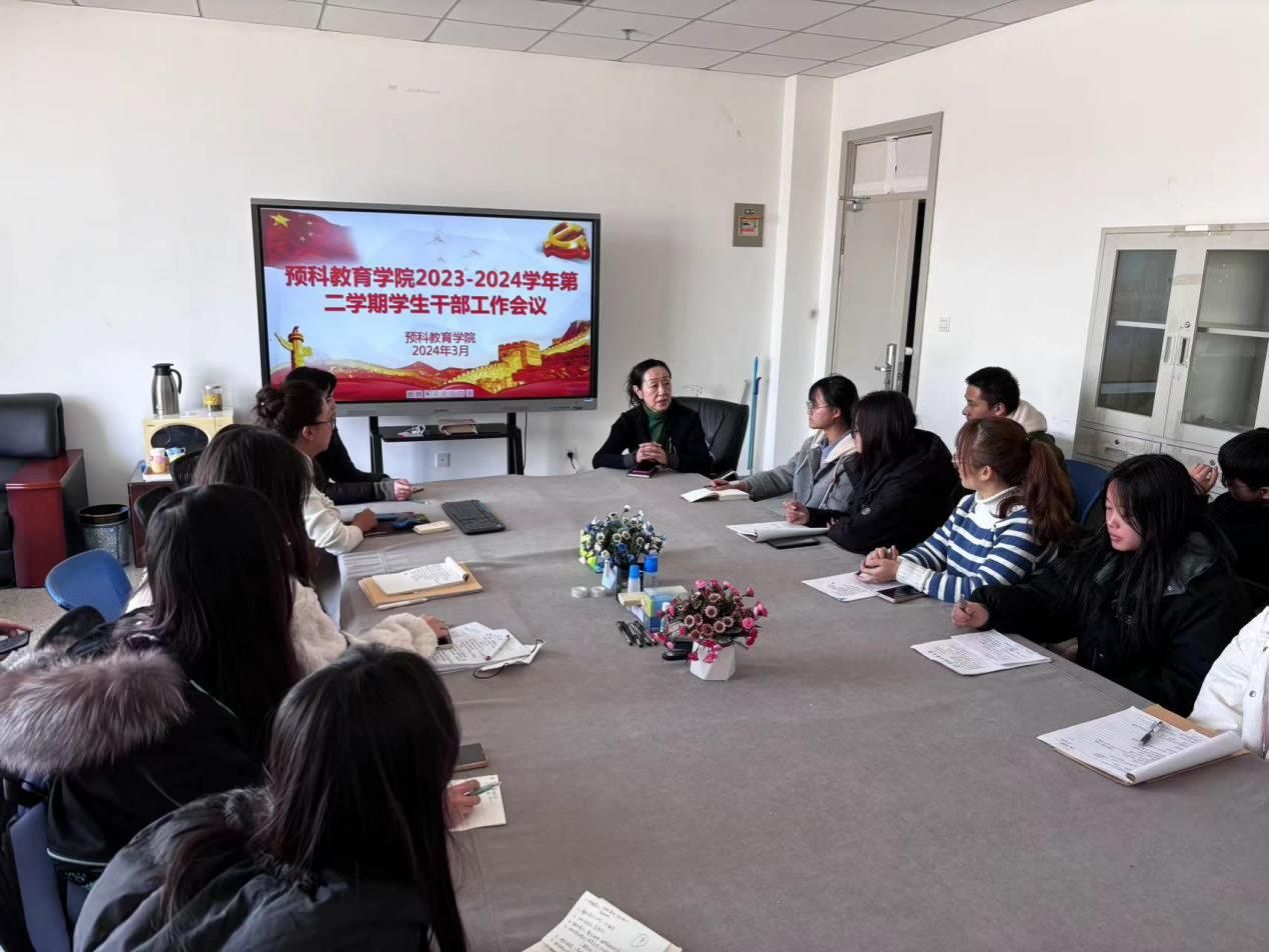2024年3月6日,預科教育學院召開2023-2024學年第二學期學生干部工作會議,傳達學校相關會議精神,全面部署本學期各項工作。學院黨總支副書記、學院團委負責人、輔導員、班主任、學生干部等20余人參加了會議。