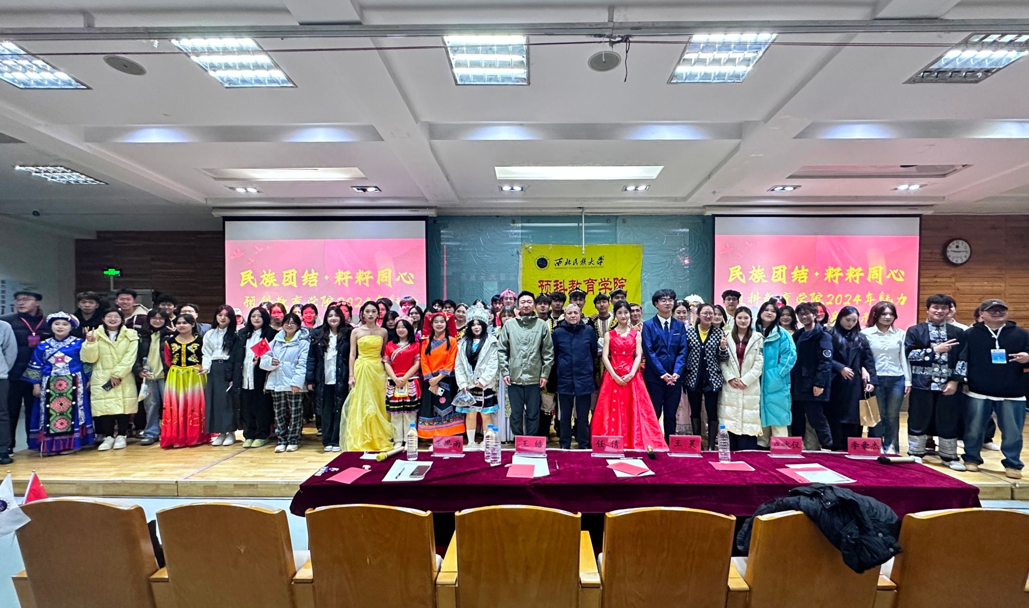 2024年12月9日晚,校園被紛紛揚(yáng)揚(yáng)的雪花裝點(diǎn)得宛如童話世界,而公教樓101教室內(nèi)卻是暖意融融,歡聲笑語不斷。此時,預(yù)科教育學(xué)院正在隆重舉辦“民族團(tuán)結(jié)?籽籽同心”2024年魅力團(tuán)支部風(fēng)采展示大賽,活動現(xiàn)場氣氛熱烈,高潮迭起。學(xué)院黨政領(lǐng)導(dǎo)、班導(dǎo)師、各學(xué)院學(xué)生會代表、預(yù)科教育學(xué)院各團(tuán)支部學(xué)生以及往屆結(jié)業(yè)生代表共計(jì)380余人歡聚一堂,共同見證這場青春與團(tuán)結(jié)的盛宴。