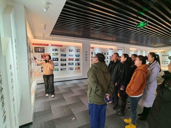 主題黨課結束后,大家前往西北民族大學校史館參觀。講解員為夏官營鎮郝家灣村黨支部的黨員們介紹了學校的發展歷程及校史館藏。從第一展廳的領導關懷以及光輝歷程,最后到新時代的展廳,歷史發展的脈絡一幕幕呈現在眼前。第二展廳各個學院的成就、風采,彰顯了西北民族大學深厚的文化底蘊。第三展廳中古老的泛黃手稿、現代科研成就,凝練了新時代與歷史的結合,顯現了科技與人文的并進,重演了歷史的變遷與曾經光輝的故事。
