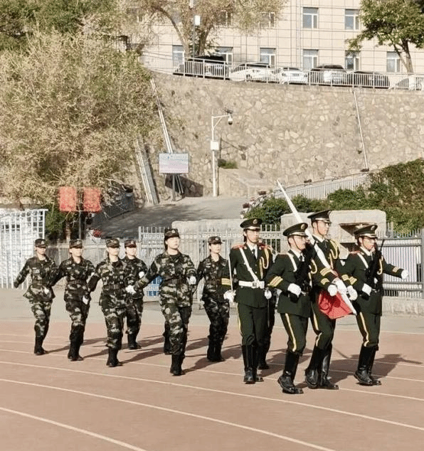 迎著初升的朝陽,英姿颯爽的國旗護衛隊隊員們邁著整齊劃一、鏗鏘有力的步伐護送鮮艷的五星紅旗進場。隨著高亢激昂的《義勇軍進行曲》的旋律響起,五星紅旗在晨光中緩緩升起,迎風飄揚,全體師生肅立、行注目禮。