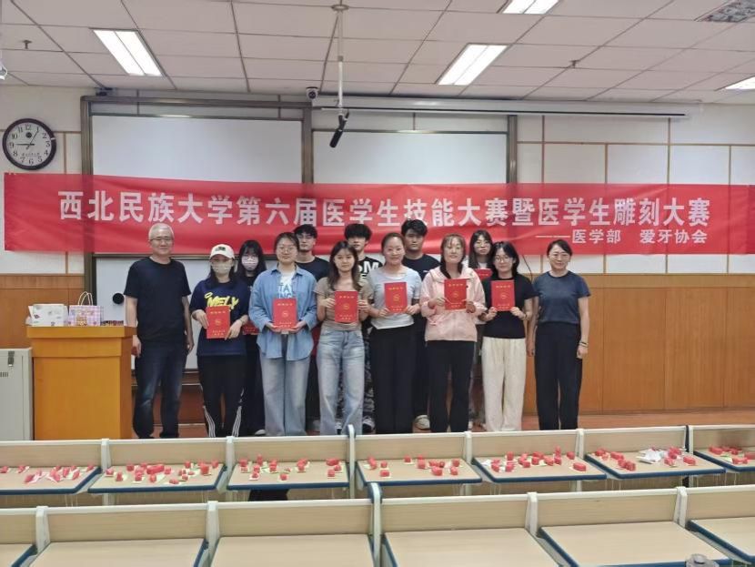 為豐富校園文化,提升醫學生實踐與創新能力,由西北民族大學校團委、醫學部聯合主辦,醫學部團委與愛牙協會承辦的第六屆醫學生技能大賽暨醫學生雕刻比賽近日成功舉辦。醫學部教授聶紅兵、愛牙協會指導教師張軒擔任評委,口腔醫院院長宋天柱到場指導。