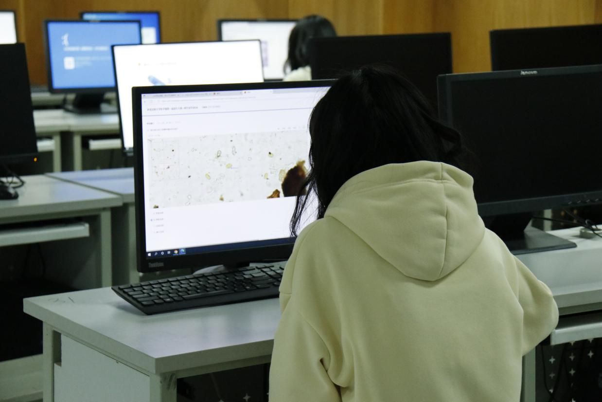 本次比賽設有六個學科賽道,分別是人體解剖學、組織學、病理學、寄生蟲學、病原微生物學以及混合賽道,吸引了400余名醫學生參與。比賽在文津樓六個機房舉行,400余名考生登錄“醫學形態學數字化教學平臺”和“數字人體解剖系統平臺”,進入考試系統認真作答。經過激烈的角逐,一批優秀的學生憑借出色的觀察能力和辨識技巧脫穎而出。最終,各個賽道推選前20名同學參加第二屆高等醫學院校大學生形態學讀片和人體解剖標本辨識技能大賽。