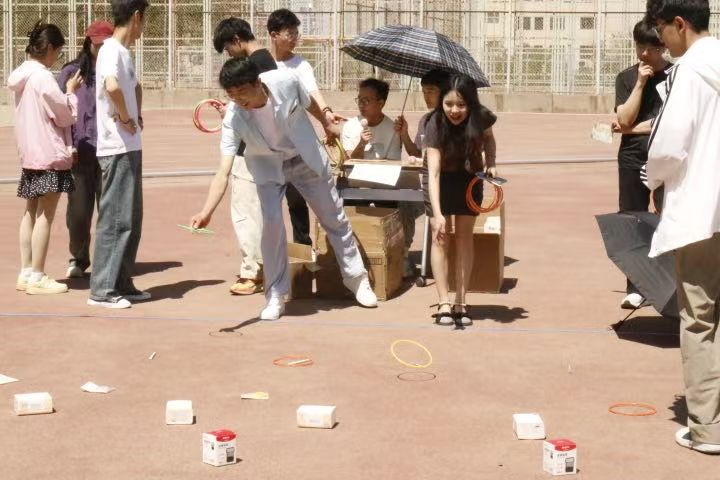 本次游園會活動開設了“盲人打鼓”“投壺”“套圈”“蒙眼尖雞”“揪尾巴”等趣味項目,吸引了數百名師生參與,反響熱烈。