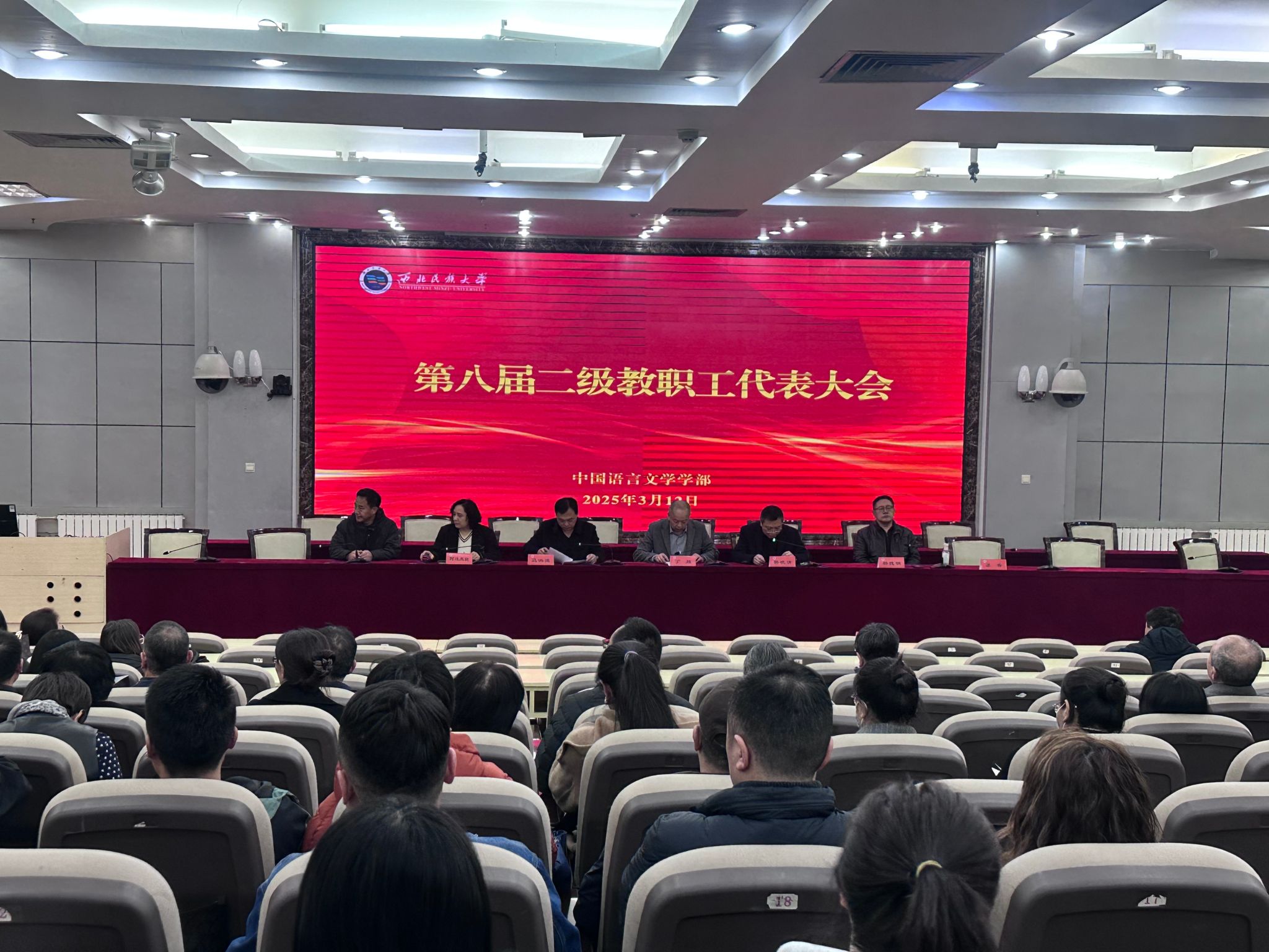 3 月 12 日,中國語言文學學部于西北新村文津樓學術廳召開第八屆教職工代表大會,常務副書記馬鴻波主持會議,全體教職工參會。