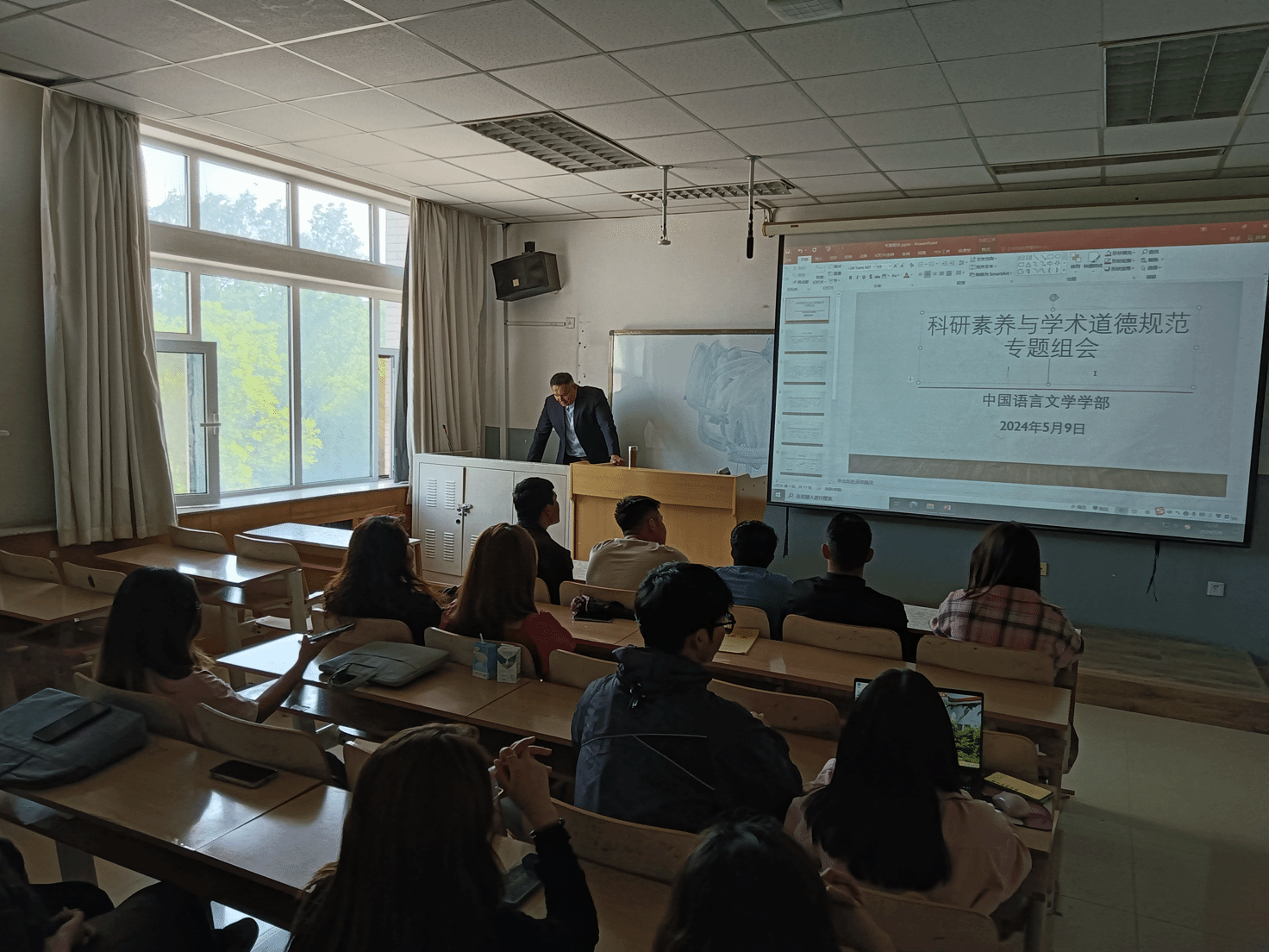5月9日,中國(guó)語(yǔ)言文學(xué)專業(yè)研究生在致美樓201教室召開(kāi)了“科學(xué)素養(yǎng)與學(xué)術(shù)道德規(guī)范”專題研究生組會(huì),會(huì)議由阿力木尼牙孜老師主持。此次會(huì)議以線下會(huì)談的方式召開(kāi),中國(guó)語(yǔ)言文學(xué)學(xué)部語(yǔ)言學(xué)及應(yīng)用語(yǔ)言學(xué)方向和中國(guó)古典文獻(xiàn)學(xué)方向碩士生參加了此次組會(huì)。
