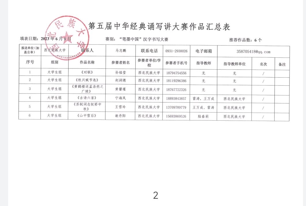 甘肅省第五屆中華經(jīng)典“誦寫講”大賽校內(nèi)選拔賽結(jié)果公示