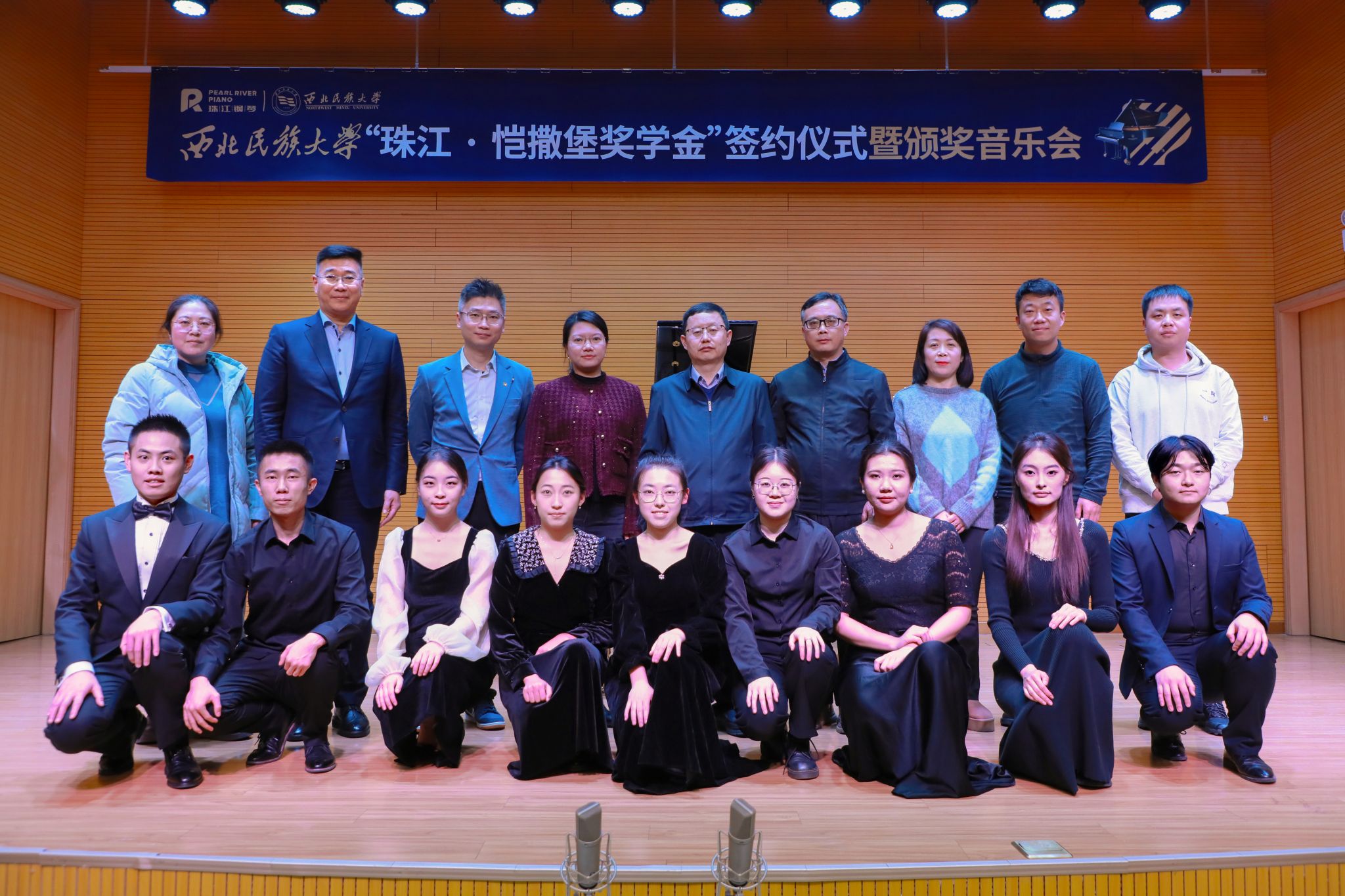 首先,廣州珠江愷撒堡鋼琴有限公司黨委副書記麥東嬌致辭,希望雙方能進一步加強校企合作,她鼓勵獲獎學生再接再厲,勇闖佳績。隨后,學校黨委常委、副書記景兆璽講話,他感謝珠江鋼琴集團設立“珠江·愷撒堡”獎學金,為有才華的年輕學子提供了實現夢想的平臺,他對獲獎學生提出要求,希望同學們在音樂的道路上不斷追求卓越,努力實現自己的人生價值。接著,雙方代表共同簽署西北民族大學愷撒堡獎學金合作協議,并為獲獎學生頒獎。