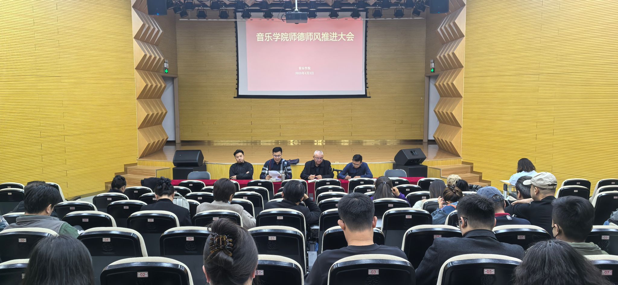 4月2日下午,學(xué)院在音樂(lè)廳召開(kāi)2025年師德師風(fēng)推進(jìn)大會(huì)。會(huì)議由學(xué)院院長(zhǎng)賽音同志主持,全體教職員工參會(huì)。
