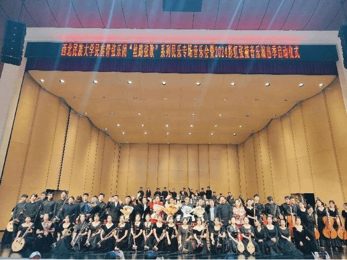 4月5日晚,張掖市大劇院內絲竹悅耳,雅樂飄飛。由中共張掖市委宣傳部、張掖市文化廣電和旅游局主辦,張掖市文化館、甘肅博奕影視文化有限公司承辦的2024彩虹張掖音樂演出季精彩啟幕。 西北民族大學民族管弦樂團作為演出嘉賓,進行開幕式民樂專場演出。張掖市委宣傳部副部長李晶主持啟動儀式,西北民族大學音樂學院副院長、教授桑吉頓珠致辭,張掖市政府黨組成員、副市長安維國致辭并宣布活動啟動。音樂會邀請了全市勞動模范、道德模范、駐張官兵及快遞員、清潔工等行業代表和社會各界群眾,共同聆聽弦歌雅樂,感受韻律之美。