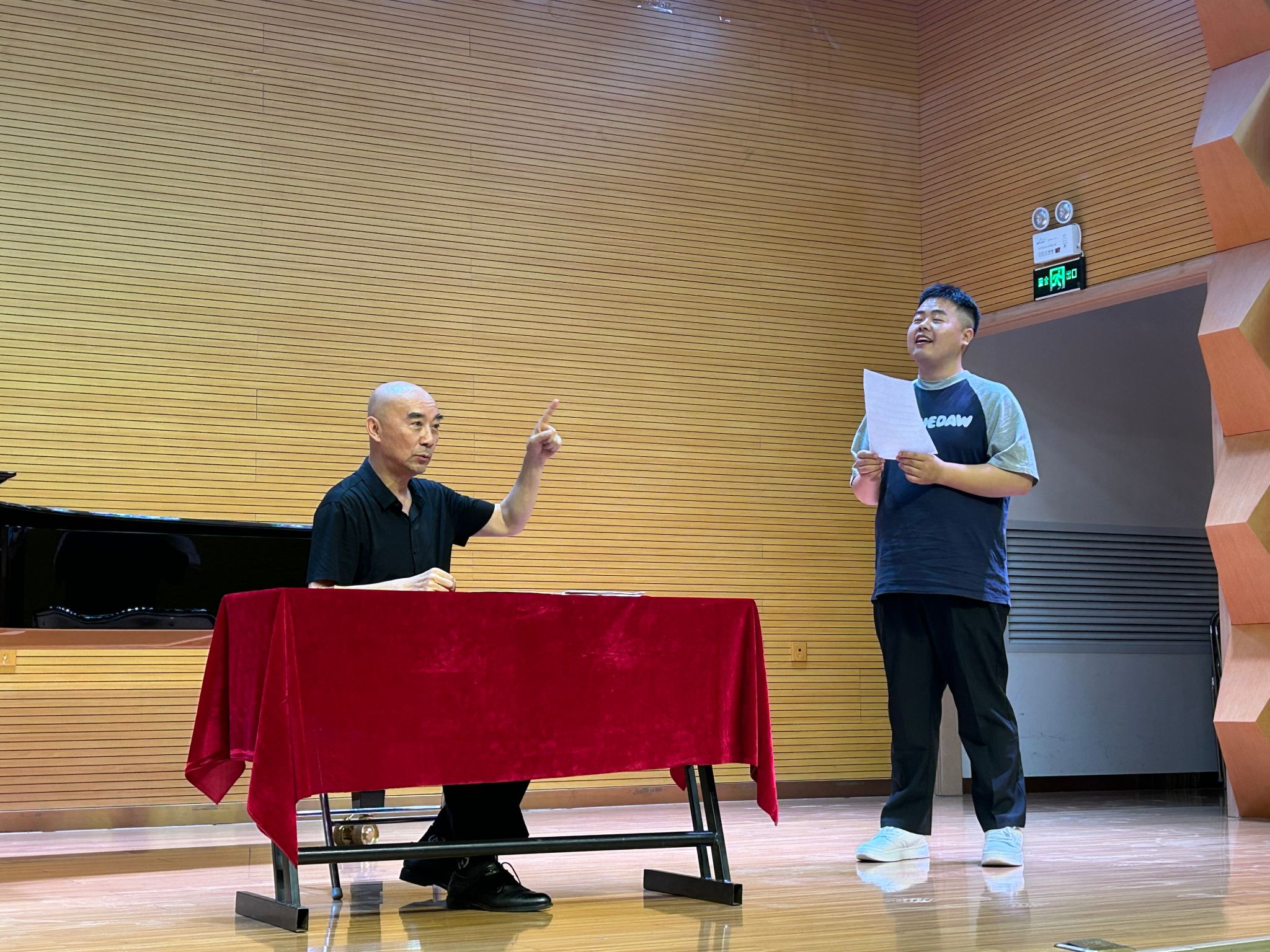 圖為扎西朋達(dá)老師進(jìn)行歌曲《滿江紅》的演唱及藝術(shù)處理課程授課