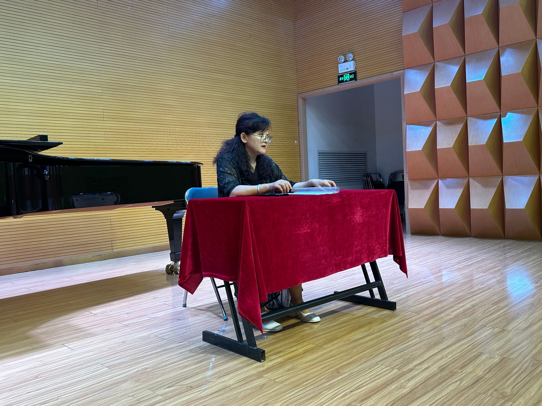 圖為吳靈萍老師進(jìn)行中國(guó)藝術(shù)歌曲《虞美人·聽(tīng)雨》演唱技巧與情感表達(dá)的講解授課