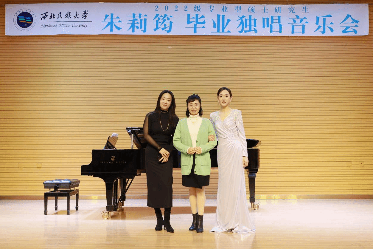 2024年10月25日上午十二點,2022級專業(yè)型碩士研究生朱莉筠成功舉辦畢業(yè)獨唱音樂會。整場音樂會歷時一個小時,共演唱了《讓我痛哭吧》《靜夜思》《包楞調(diào)》《三月桃花心中開》等十二首作品,其中外國作品三首,中國藝術(shù)歌曲四首,民歌三首,歌劇選段兩首。本場音樂會藝術(shù)指導(dǎo)由馬嵐老師擔(dān)任,參加本場音樂會的評委老師有吳靈萍、范蕓、尹勝麟,主持人顧天義。