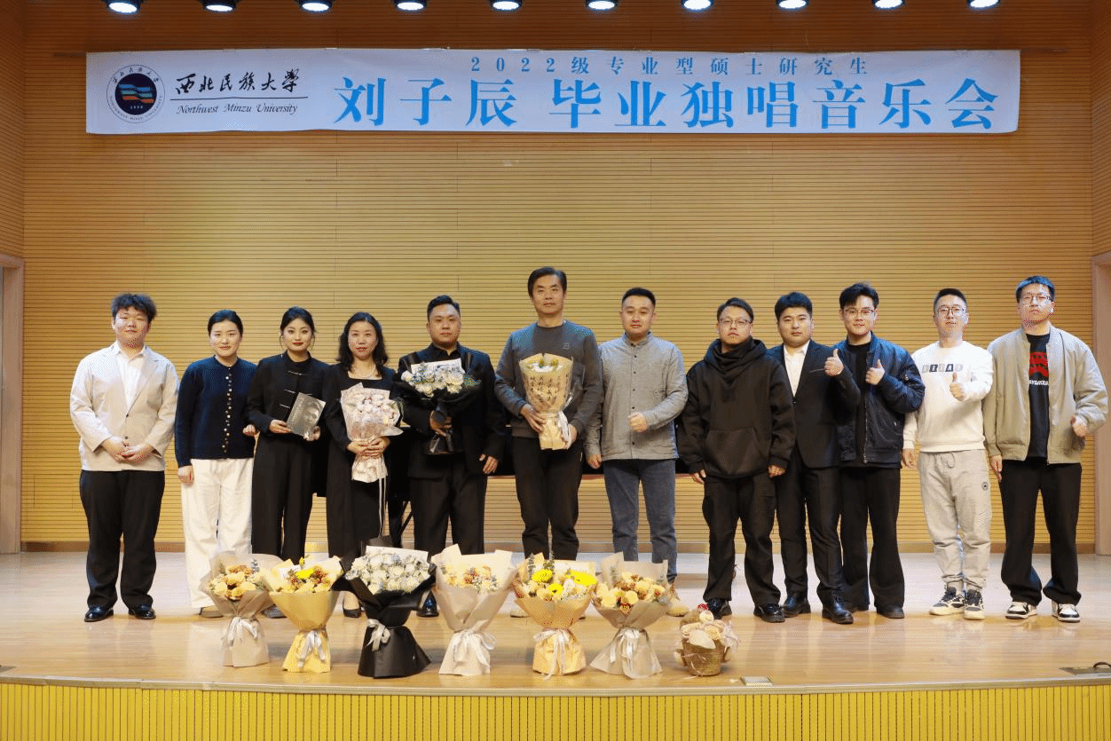 2024年11月15日下午14:00,2022級專業型碩士研究生劉子辰成功舉辦畢業獨唱音樂會。整場音樂會歷時一個小時,共演唱了《那就是我》《父親的草原母親的河》《偷灑一滴淚》《春風你為何喚醒我》《我的太陽》等十二首作品,其中法語作品一首,意大利語作品五首,中國藝術歌曲三首,中國古詩詞藝術歌曲一首,創作歌曲兩首。本場音樂會藝術指導由張寧寧老師擔任,參加本場音樂會的評委老師有吳靈萍、范蕓、尹勝麟,葉莉秀主持。