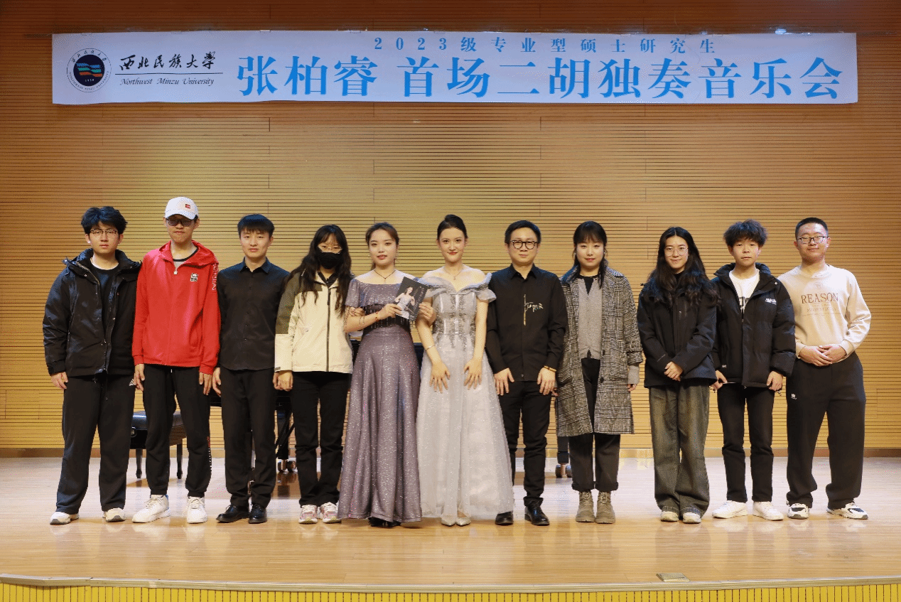 2024年11月22日上午8點30分,2023級專業型碩士研究生張柏睿成功舉辦首場二胡獨奏音樂會。整場音樂會全程1小時,共演奏六首作品,其中風格性作品三首《山村小景》《如來藏-袍修羅蘭》《曲江吟》;傳統作品必奏曲目一首《月夜》;協奏曲兩首《紅梅隨想曲》《江河云夢》。本場音樂會藝術指導由史洋老師擔任,主持人耿薇。鄭穎、東保吉、王潔三位老師擔任評委。